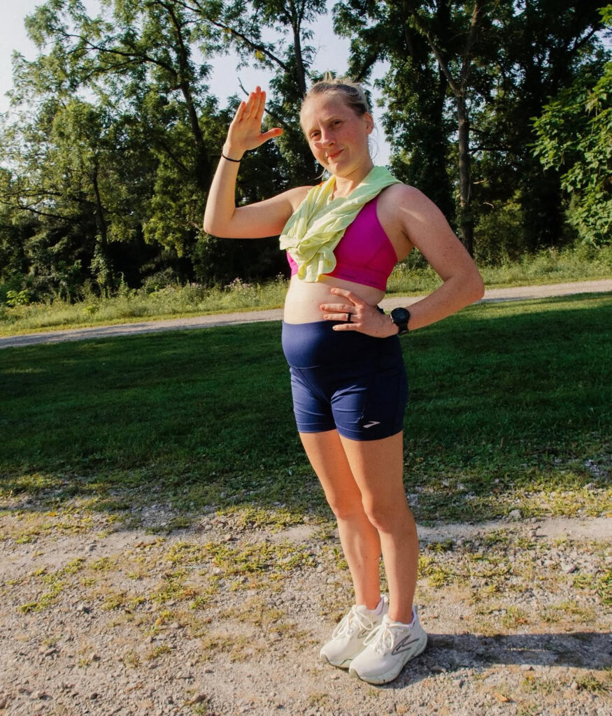 Amy Davis-Green, currently seven months pregnant, is a dedicated long-distance runner, who ran a personal best of 53:36 at the USATF 10 Mile Championships while four weeks pregnant. She shared, “Honestly, I think this grant will give me the peace of mind to invest in strength training, pelvic floor therapy and little nuances I might not even be aware of. It gives me the ability and capacity to focus on these areas in ways I wouldn’t be able to otherwise.”